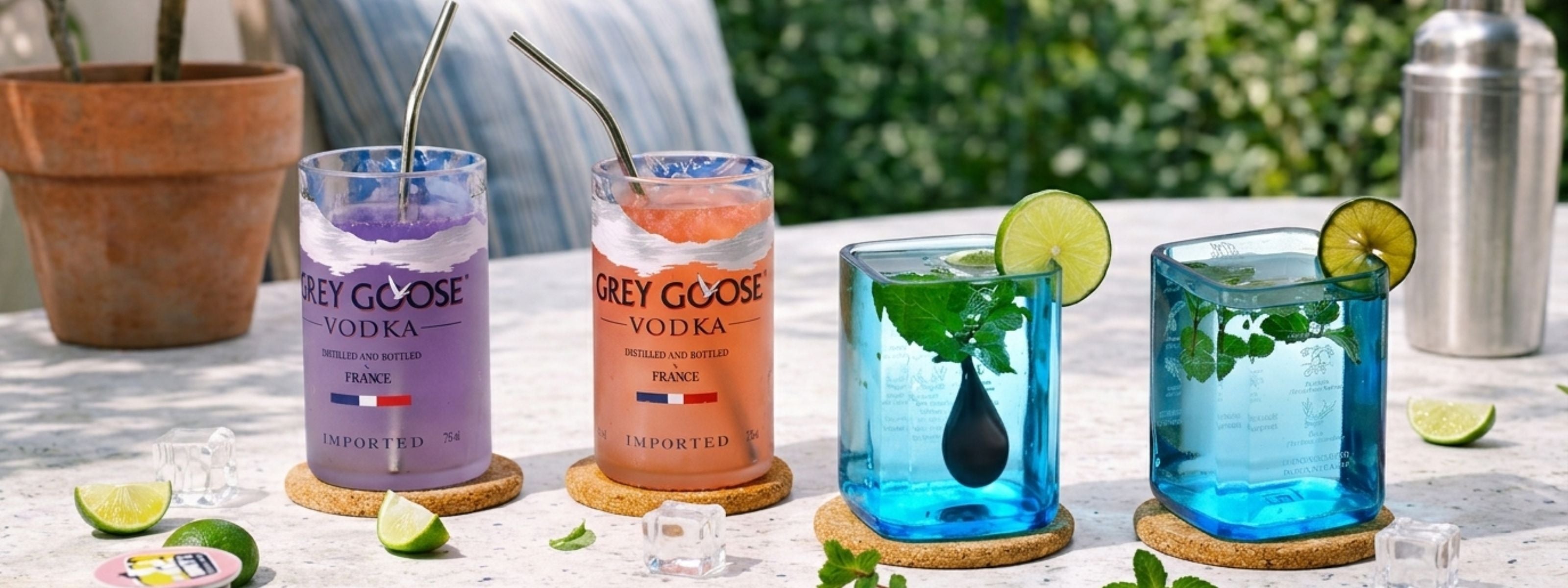 Old bottles transformed into innovative designs through careful craftsmanship.