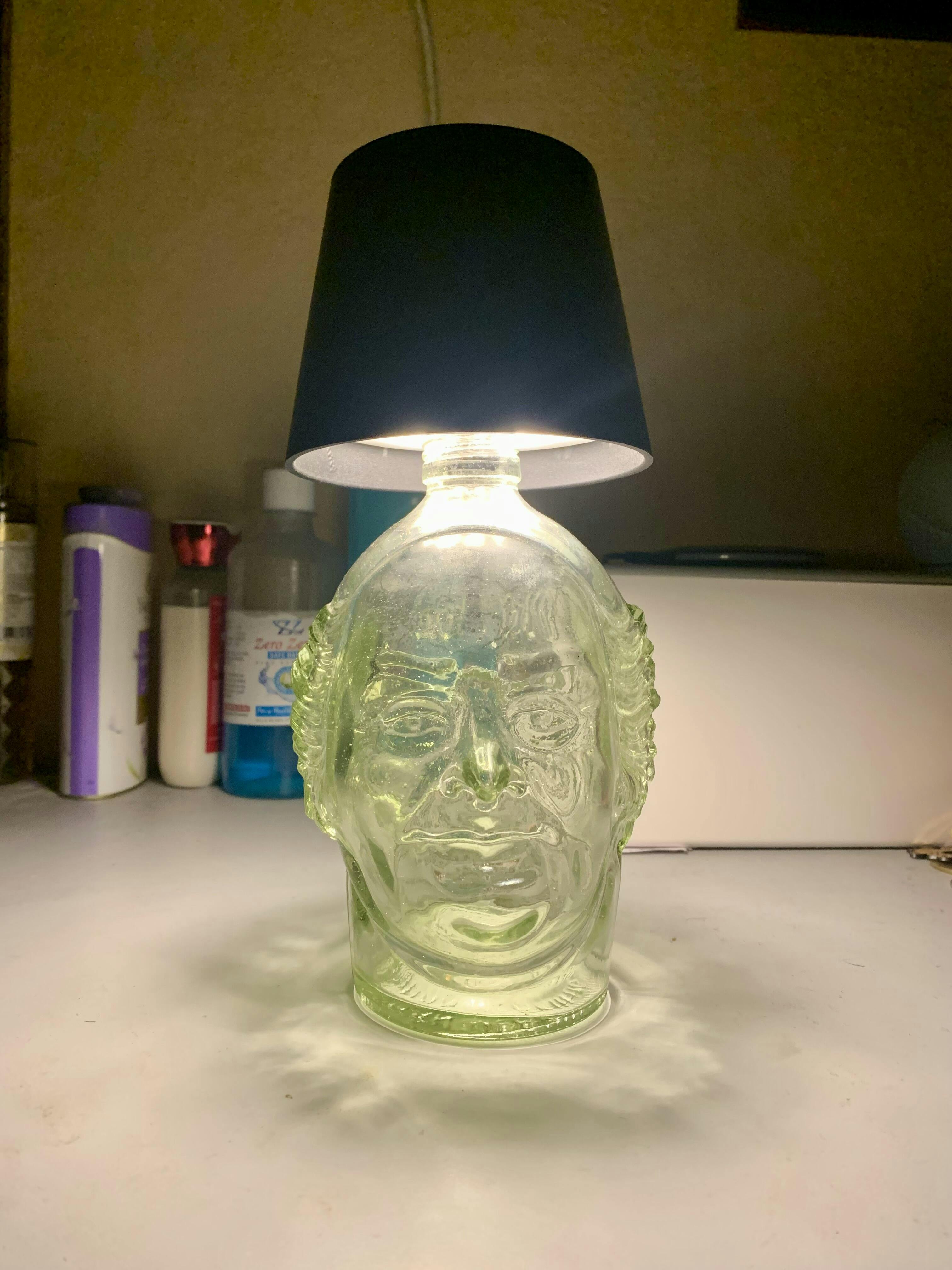 Light up your space with the wireless Old Monk bottle lamp! This fun, rechargeable lamp is made from a real upcycled Old Monk bottle, giving your room a cozy, warm glow. Compact and cordless, it’s perfect for any spot—whether it’s your bedside, bar, or café. Enjoy the charm